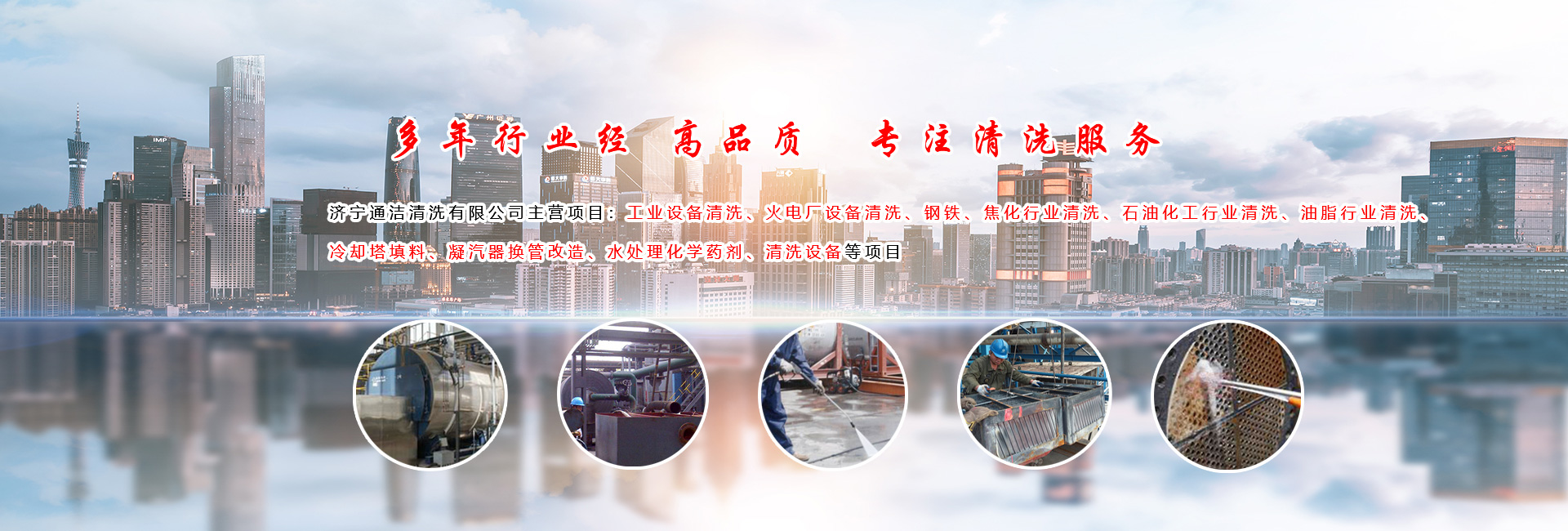 濟寧通潔清洗有限公司創建于2011年,致力于工業設備清洗、水處理藥品以及各種新型高效冷卻塔淋水填料的生產和銷售,是山東規模性生產、研發、設計、改造、銷售為一體的綜合性企業。濟寧通潔清洗有限公司,擁有超高壓水射流設備3臺,美國超高壓設備,工作壓力可達2700公斤,建有化驗室,具有完備的化驗、分析及檢測的鑒定手段,各種化學清洗裝置三十余套,具備多處施工的能力,在化學清洗方面,可根據不同設備材質、垢質的成分、選配不同清洗藥劑。公司擁有專利清洗技術、專用清洗設備、專用清洗藥劑,專業施工隊伍,完全可以滿足客戶超越性的期望。在水處理方面,保護水資源、不斷提高水的循環利用率是我們的工作目標,針對各地區高硬度、高堿度、高PH值的水質特點,本公司獨立研制的數十種復合阻垢緩蝕劑、以及多種高效廣譜殺菌滅藻劑,藥劑具有投加量少、使用水質范圍寬、阻垢緩蝕率高、不污染環境等特點,公司產品廣泛應用于電力、化工、油脂、鋼鐵、焦化、造紙、制藥、食品等領域。為客戶創造價值,助企業贏取未來!各種新型高效冷卻塔淋水產包括新型斜折波、“s . . . . .